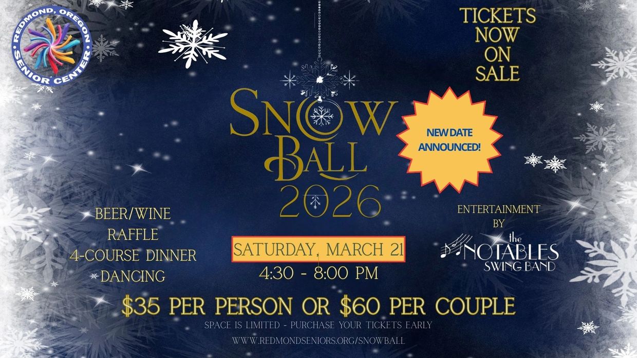 The Snow Ball is our chance to honor the incredible members who make the Redmond Senior Center vibrant, welcoming, and full of life. It’s a night to laugh, connect, and enjoy the warmth of community in the heart of winter..